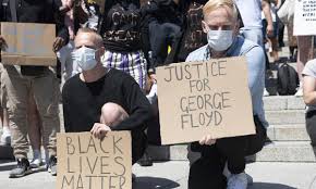 In London’s Trafalgar Square, protesters knelt in unison at 1 pm on Sunday to honor Floyd, some in masks, others holding up signs with slogans such as “Justice for George Floyd” and chanting, “Black Lives Matter.” Some protestors focused their messages on racial injustice in the UK.
