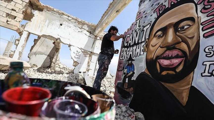 ProtestBlog.org: The reach of George Floyd and the message embodied in his death have taken over the world within days. Even Syria, as if it did not have enough of its own problems, stands in solidarity with George Floyd. Below, a Syrian protestor artfully places his work in the rubble of a bombed out building.