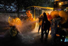 New images from the unrest in Bangkok, where protesters are pushing for a shakeup of the nation’s monarchy and leadership, show demonstrators fending off jets of water by ducking behind these bright yellow balloons — which resemble massive rubber duckie bath toys.